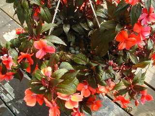 We got our hanging basket of impatiens on June 24. Two days later, a couple of house finches had claimed it as their own. The male (Mr. Pavaratti) sang continuously and scared off other birds. I think he was a bit peeved at us when we got two bird feeders a couple days later. How dare we encourage others to enter his territory?!