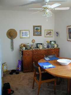 The dining room is a cozy area. The kitties have their feeding corner