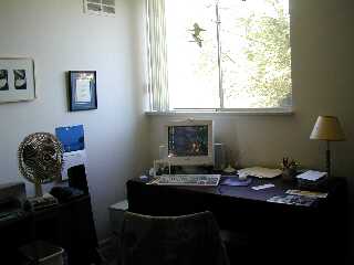 Our office has a nice window that gives us a cross breeze. A crane-mobile